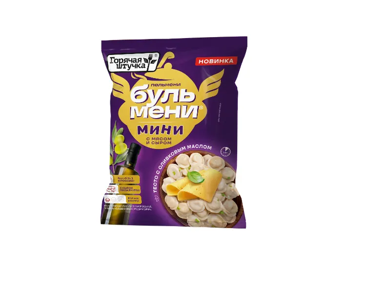 Пельмени Бульмени мини с мясом и сыром ТМ Горячая штучка ТС Бульмени ГШ флоу-пак сфера 0,4 кг