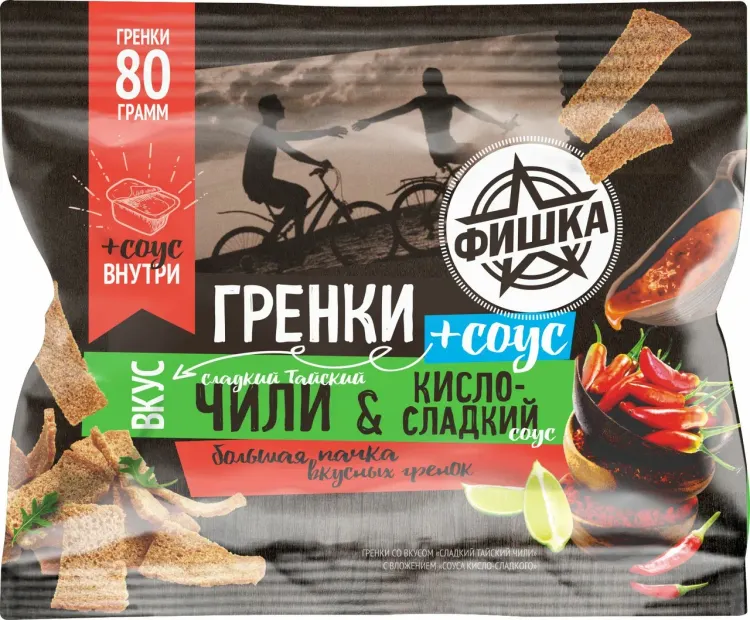 Состав: хлеб ржано-пшеничный (мука ржаная хлебопекарная обдирная, мука пшеничная хлебопекарная 2 сорт, вода, соль, дрожжи хлебопекарные), масло подсолнечное рафинированное дезодорированное, ароматизатор (соль, сахар, глюкоза, томаты порошок, чеснок порошок, регуляторы кислотности (Е262(ii), лимонная кислота), дрожжевой экстракт, натуральные вкусоароматические вещества, специи, краситель (экстракт паприки), жир растительный, подсластитель (Е955), агент антислеживающий (Е551)), соль пищевая. Продукт может содержать незначительное количество ракообразных, молока, сои, горчицы, хрена, рыбы и морепродуктов, куркумы, кунжута, сельдерея и продукты их переработки. Продукт содержит глютен. Готов к употреблению. Изображение на упаковке предлагает способ сервировки.