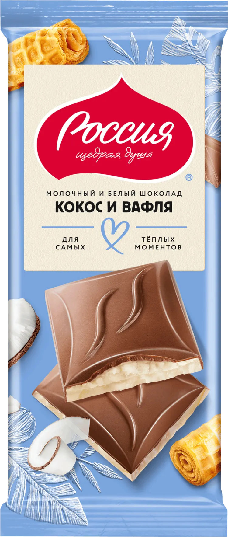 ШОКОЛАД РОССИЙСКИЙ БЕЛЫЙ КОКОС ВАФЛЯ 75ГР*22ШТ