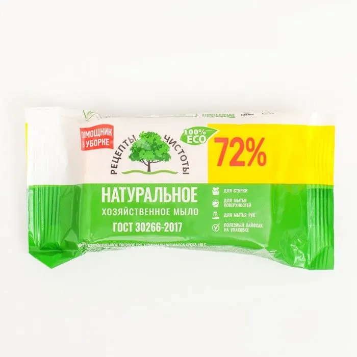 МЫЛО ХОЗЯЙСТВЕННОЕ ТВЕРДОЕ 72% РЕЦЕПТЫ ЧИСТОТЫ 150Г