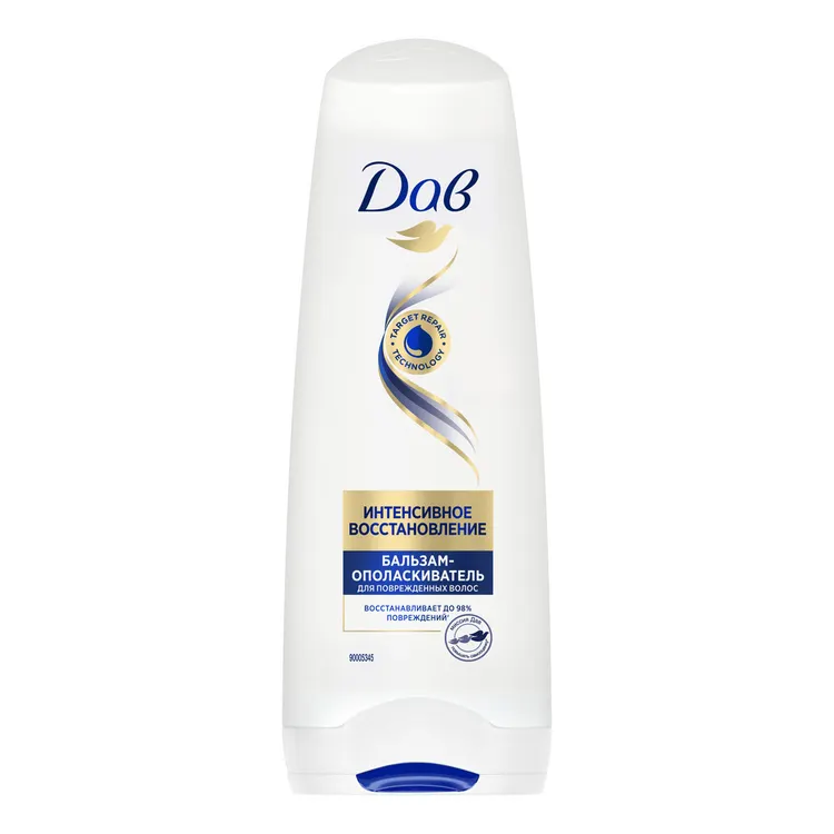 Специальные средства для ухода за поврежденными волосами Dove Hair Therapy Интенсивное восстановление созданы, чтобы сделать волосы сильными, ухоженными и защищенными от ломкости на длительное время. Бальзам-ополаскиватель с технологией Target Repair работает сразу в 3-х направлениях. Технология восстановления мгновенно определяет и восстанавливает любые повреждения. Молекулы Fibre Repair Actives проникают вглубь поврежденной структуры волоса и воссоздают ее. Прогрессивное глубокое питание делает волосы более устойчивыми к будущим повреждениям. Результат ? восстановление до 98% повреждений*.
