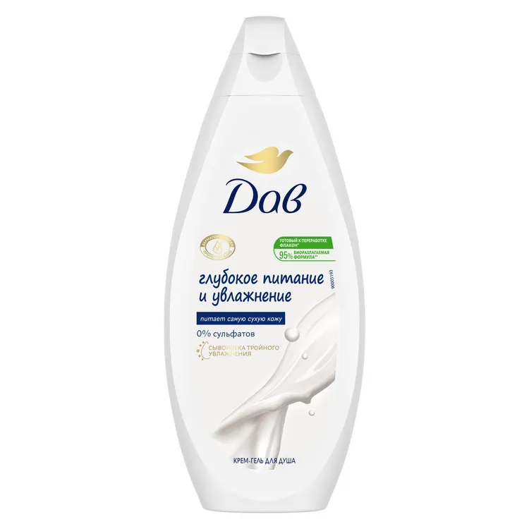 Может ли гель для душа одновременно глубоко питать и увлажнять кожу? Крем-гель для душа Dove глубокое питание и увлажнение образует нежное облако кремообразной пены, заботливо очищающее и питающее Вашу кожу. Новая формула естественного увлажнения* обеспечивает мгновенную мягкость и увлажненность кожи.