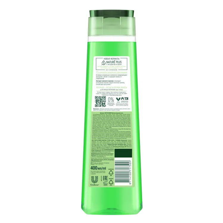 Aqua, Sodium Laureth Sulfate, Sodium Chloride, Achillea Millefolium Extract, Aesculus Hippocastanum (Horse Chestnut) Bark Extract (экстракт конского каштана), Chamomilla Recutita Flower Extract, Chelidonium Majus Extract, Evernia Furfuracea (Treemoss) Extract, Evernia Prunastri (Oakmoss) Extract, Hydrolyzed Wheat Protein, Hypericum Perforatum Flower/Leaf/Stem Extract, Linum Usitatissimum (Linseed) Seed Oil (масло льна), Niacinamide, Panthenol, Prunus Amygdalus Dulcis (Sweet Almond) Oil (масло миндаля), Rosa Canina Fruit Extract (экстракт шиповника), Salvia Officinalis (Sage) Leaf Extract (экстракт шалфея), Urtica Dioica Leaf Extract, Verbena Officinalis Leaf Extract (экстракт вербены), Citric Acid, Cocamide DEA, Cocamidopropyl Betaine, Glycerin, Pantolactone, Parfum, PEG-7 Glyceryl Cocoate, Phenoxyethanol, Polyquaternium-10, Sodium Benzoate, Sodium Phytate, CI 19140, CI 42090.