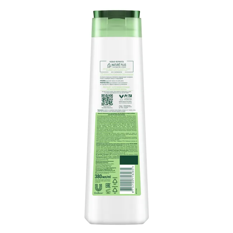 Бальзам-ополаскиватель Крапива не содержит силиконов и на 97% состоит из компонентов натурального происхождения2. Отлично подходит для всех типов волос.