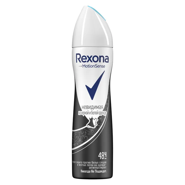 Будьте безупречны с антиперспирантом-аэрозолем Rexona Невидимая на черной и белой одежде. Он гарантирует длительную защиту от пота и запаха благодаря усиленной формуле для непревзойденной** защиты от пота и запаха на 72 часа*! Новая** революционная технология Motionsense активируется при движении, сохраняя свежесть и абсолютный** комфорт на весь день. Микрочастицы создают дышащую микропленку для надежной защиты от пота и запаха. Потовые железы блокируются частично, а кожа дышит. Больше движений – больше уверенности! Не требует повторного нанесения в течение дня. Улучшенная^ формула Rexona содержит на 25% меньше солей алюминия^ – основной причины белых пятен. Бережно сохраняет ткань от белых следов, желтых пятен и выцветания. Подбирайте модные образы и будьте уверены, что антиперспирант не испортит ваши вещи.