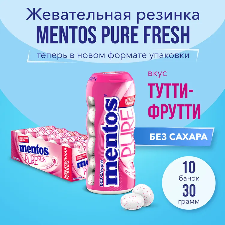 MЕНТОС ЖЕВ.РЕЗИНКА ТУТТИ-ФРУТТИ 12X10X30