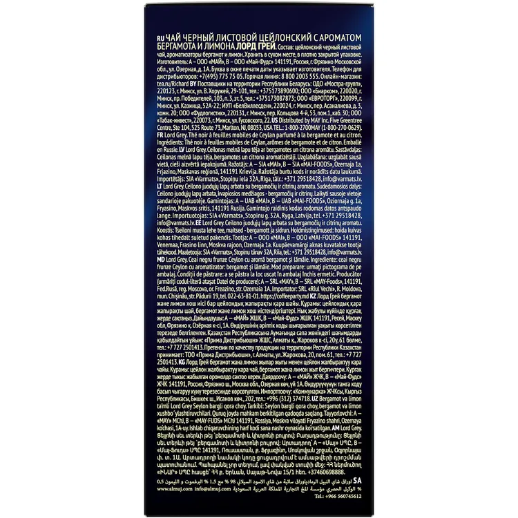 Состав: чай черный цейлонский, ароматизаторы бергамот и лимон.