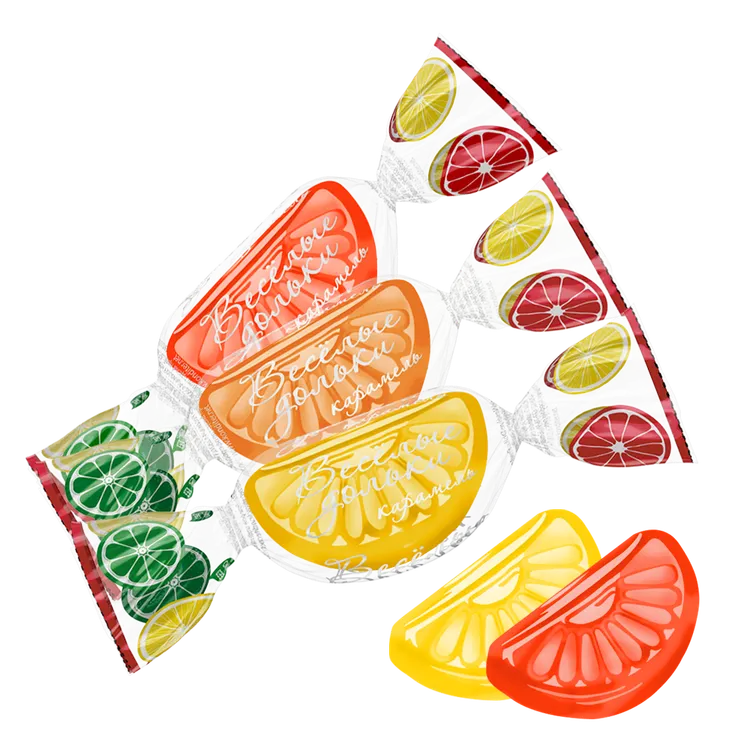 КАРАМЕЛЬ ЛЕДЕНЦ.ВЕСЕЛЫЕ ДОЛЬКИ(СО ВКУСОМ ЛИМОНА,АПЕЛЬСИНА,ГРЕЙПФРУТА) 1КГ