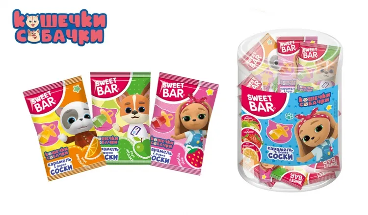 КОШЕЧКИ-СОБАЧКИ SWEET BAR КАРАМЕЛЬ В ФОРМЕ СОСКИ 6/60, 10Г.