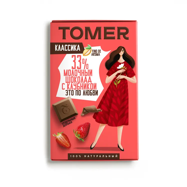 ШОКОЛАД ПОРЦИОННЫЙ С КЛУБНИКОЙ КЛАССИК (33%) 90ГР ТОМЕР