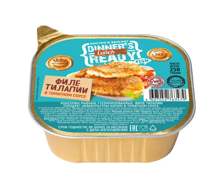 КОНС."ФИЛЕ ТИЛАПИИ В ТОМАТНОМ СОУСЕ" ЛАМИСТЕР 250ГР