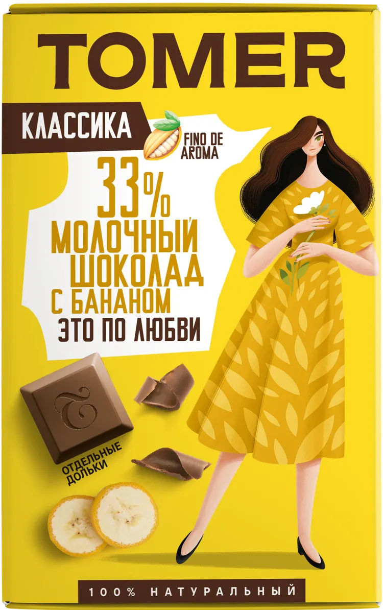 ШОКОЛАД ПОРЦИОННЫЙ МОЛОЧНЫЙ С БАНАНОМ (33%) 90ГР ТОМЕР