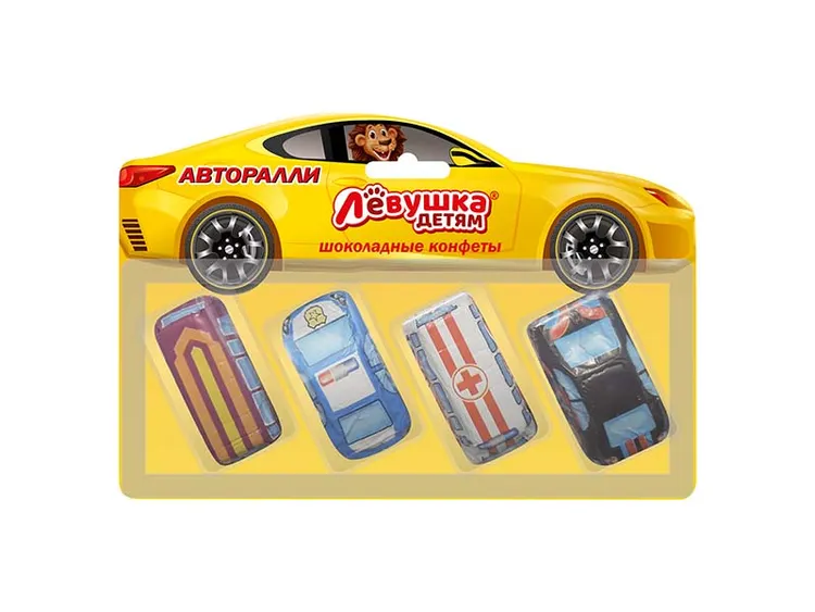 Молочный шоколад уникальной формы в виде машинок с оригинальными начинками.