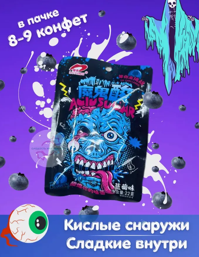 ЛЕДЕНЦЫ КИСЛЫЕ "МАГИЧЕСКОЕ ПРОБУЖДЕНИЕ" СО ВКУСОМ ЧЕРНИКА 20Г*20ШТ