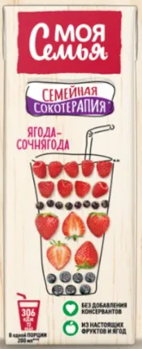 НЕКТАР МОЯ СЕМЬЯ "ЯГОДА- СОЧНЯГОДА" (ФРУКТОВО-ЯГОДНЫЙ ) 0,2Л/27 NEW