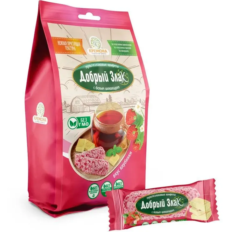 МУЛЬТИЗЛАКОВЫЕ КОНФЕТЫ С БЕЛЫМ ШОКОЛАДОМ СО ВКУСОМ КЛУБНИКИ ДОБРЫЙ ЗЛАК 150ГР