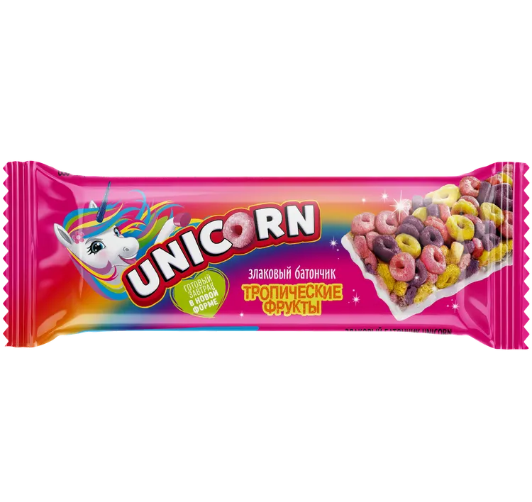 БАТОНЧИК ЗЛАКОВЫЙ UNICORN СО ВКУСОМ ТРОПИЧ.ФРУКТОВ 22Г