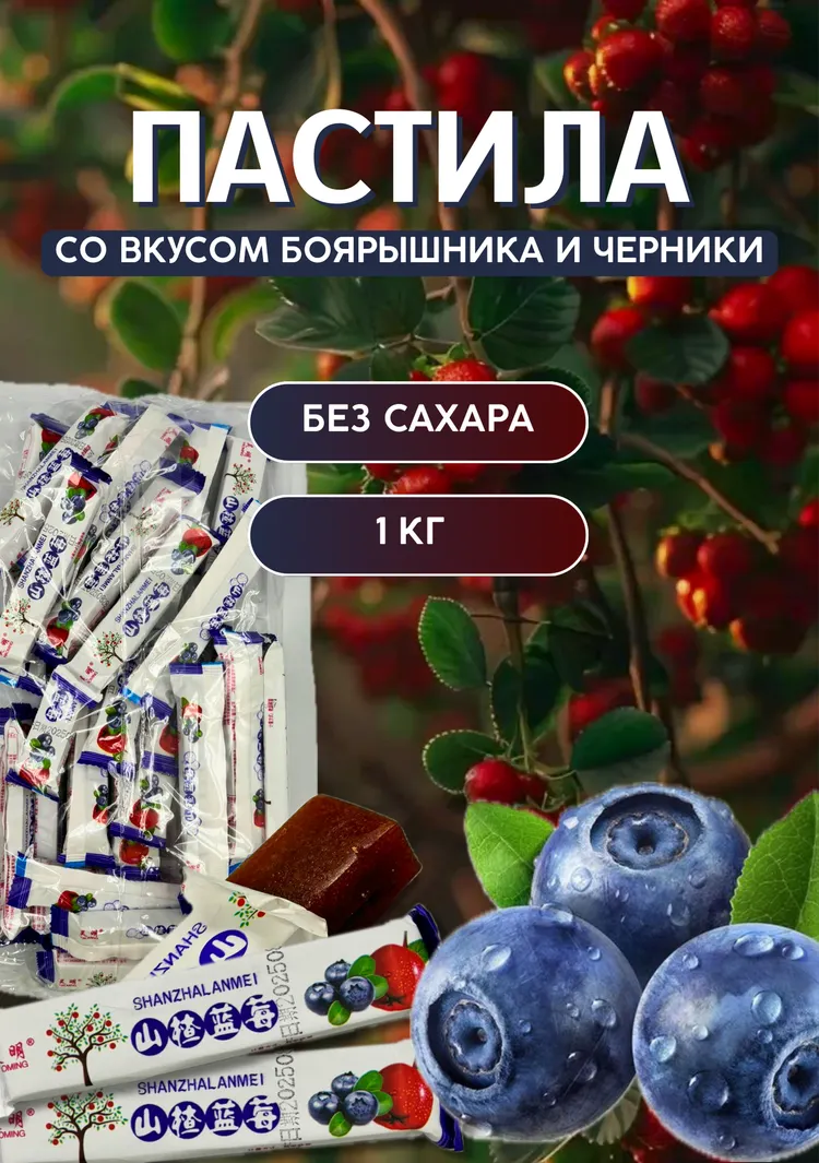 ФРУКТОВАЯ ПАСТИЛА СО ВКУСОМ БОЯРЫШНИКА И ЧЕРНИКИ 1КГ