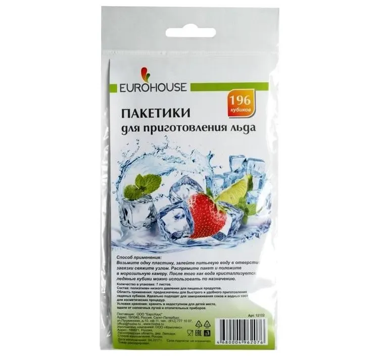 ПАКЕТИКИ Д/ПРИГОТОВЛЕНИЯ ЛЬДА, 196 КУБИКОВ, 7 ЛИСТОВ