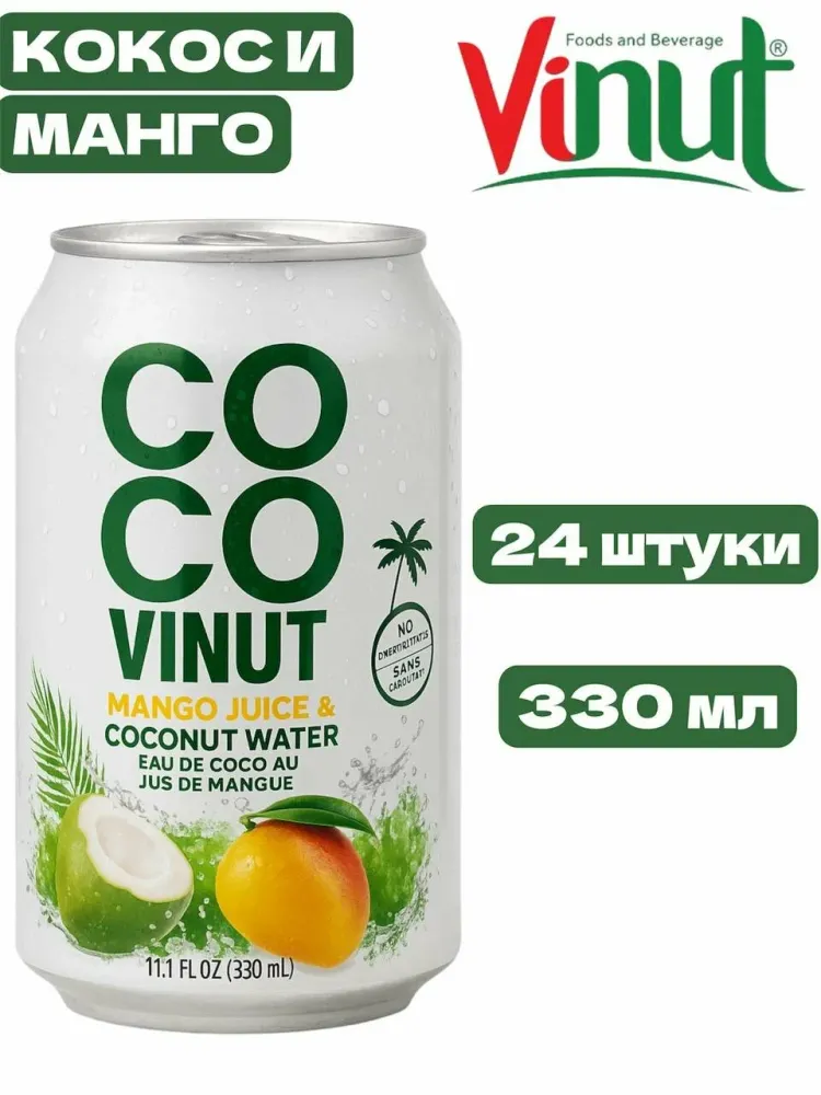 НАПИТОК COCO VINUT КОКОСОВАЯ ВОДА С СОКОМ МАНГО И МЯКОТЬЮ КОКОСА 330МЛ ВЬЕТНАМ Ж/Б 1*24ШТ