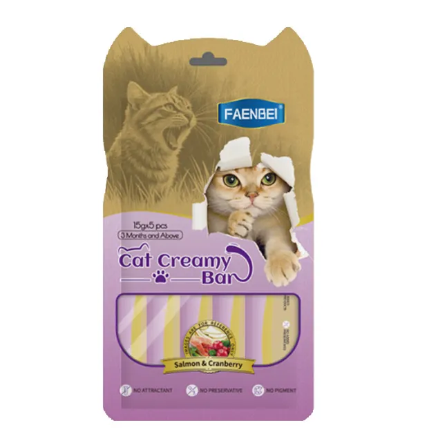 НАБОР 5ШТ ЛАКОМСТВО ДЛЯ КОШЕК И КОТЯТ FAENBEI ЛОСОСЬ И КЛЮКВА 15Г*5