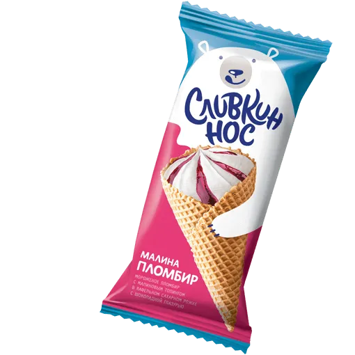 Мороженое пломбир с малиновым топпингом в вафельном сахарном рожке "Сливкин нос", м.д.ж. 15%, 100гр*20шт