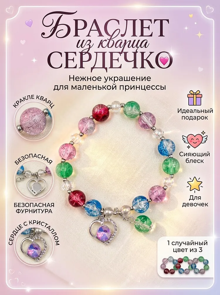 БРАСЛЕТ ИЗ КВАРЦА" СЕРДЦЕ"