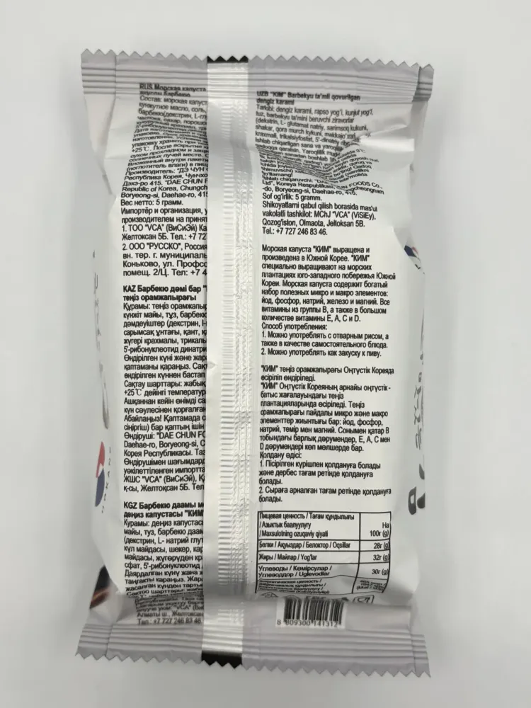 МОРСКАЯ КАПУСТА ЖАРЕННАЯ "КИМ" СО ВКУСОМ БАРБЕКЮ 5 ГР.*12ШТ*6ШТ