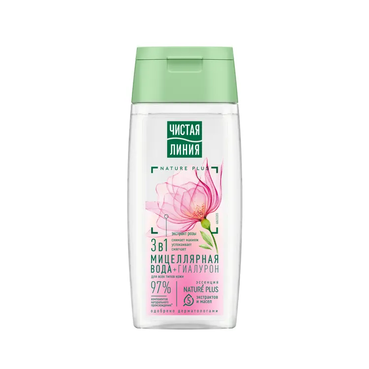 Совместите уход и очищение с Мицеллярной водой 3 в 1, которая эффективно снимает макияж, успокаивает и смягчает. Эксперты бренда Чистая Линия разработали полноценный уход, в составе которого 97% компонентов натурального происхождения*, в том числе эссенция из пяти экстрактов и масел NATURE PLUS (экстракт вербены, экстракт пиона, масла миндаля, льна, оливы), экстракт лепестков розы и гиалурон.