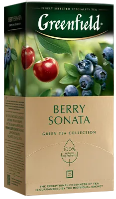 Сочная сладость спелой клубники, тонкие ноты ароматной вишни и характерная кислинка черники звучат в унисон с легкой терпкостью превосходного зеленого чая, создавая великолепно сбалансированный букет композиции Гринфилд Берри Соната.