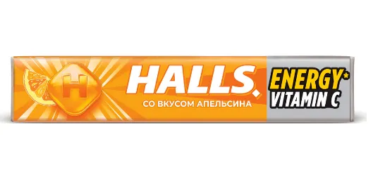 HALLS КАРАМЕЛЬ ЛЕДЕНЦОВАЯ С ВИТАМИНОМ С И ВКУСОМ АПЕЛЬСИНА 30X12X25Г