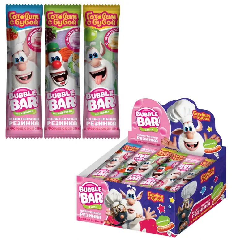 ГОТОВИМ С БУБОЙ BUBBLE BAR ЖЕВАТЕЛЬНАЯ РЕЗИНКА С НАЧИНКОЙ В ФОРМЕ СОСИСКИ 24/30, 15Г.
