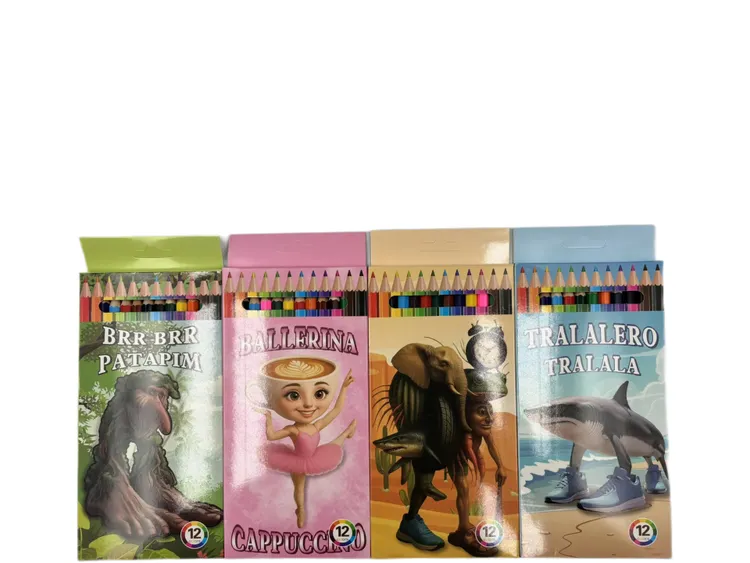 КАРАНДАШИ ЦВЕТНЫЕ ДЕРЕВЯННЫЕ ИТАЛ.МЕМ, 12 ЦВ., ШЕСТИГРАННЫЙ КОРПУС, D ГРИФЕЛЯ=2,5 ММ, 4 ДИЗАЙНА В АССОРТИМЕНТЕ, КАРТОННАЯ УПАКОВКА С ЕВРОПОДВЕСОМ