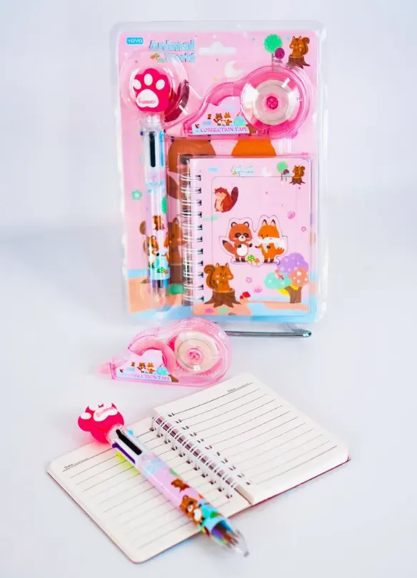 НАБОР КАНЦEЛЯРИИ "МИР ЖИВОТНЫХ", 3 ПРЕДМЕТА (БЛОКНОТ, РУЧКА, КОР.ЛЕНТА)