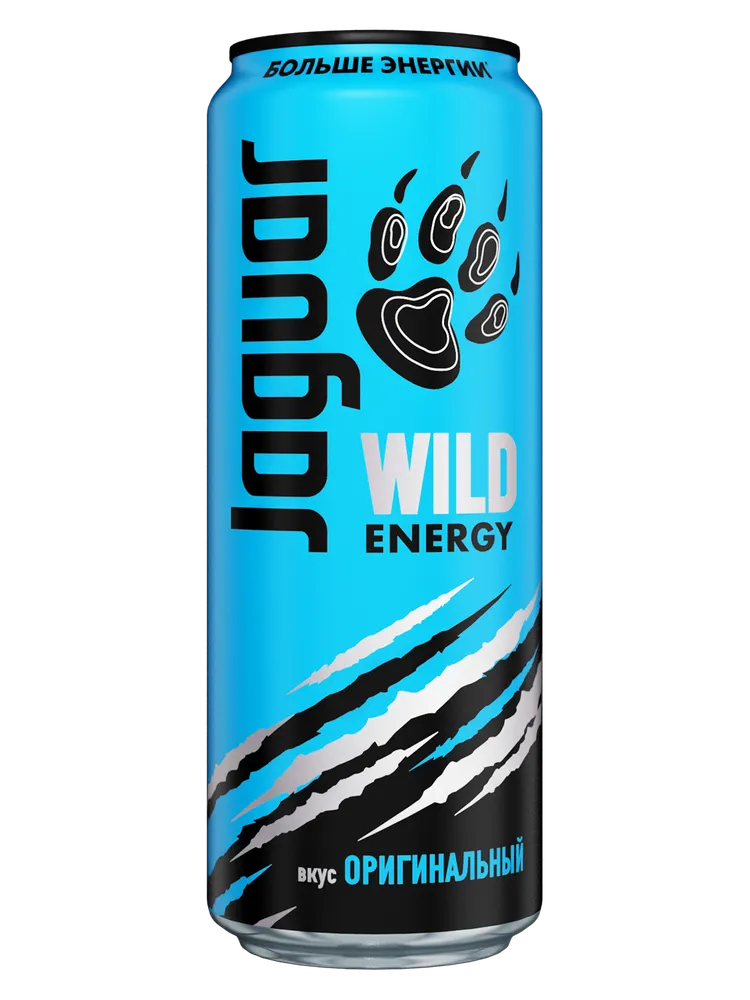 НАПИТОК БЕЗАЛКОГОЛЬНЫЙ ТОНИЗИРУЮЩИЙ ЭНЕРГЕТИЧЕСКИЙ ГАЗИРОВАННЫЙ "ЯГУАР ВАЙЛД ЭНЕРДЖИ (JAGUAR WILD ENERGY)" С ОРИГИНАЛЬНЫМ ВКУСОМ 0,45 Л БАН.