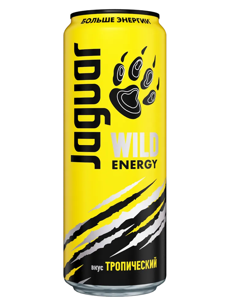 НАПИТОК БЕЗАЛКОГОЛЬНЫЙ ТОНИЗИРУЮЩИЙ ЭНЕРГЕТИЧЕСКИЙ ГАЗИРОВАННЫЙ "ЯГУАР ВАЙЛД ЭНЕРДЖИ (JAGUAR WILD ENERGY)" СО ВКУСОМ ТРОПИЧЕСКИХ ФРУКТОВ 0,45 Л БАН.