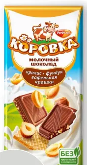 ШОКОЛАД КОРОВКА С АРАХИСОМ ФУНДУКОМ И ВАФЕЛЬНОЙ КРОШКОЙ 75ГР*16ШТ