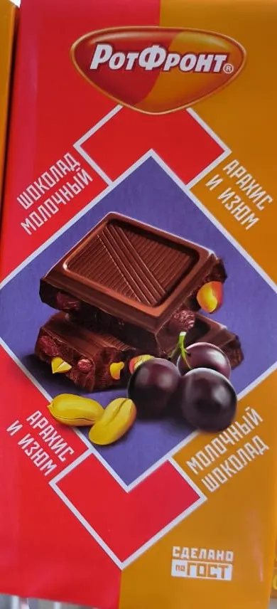 ШОКОЛАД МОЛОЧНЫЙ РОТ ФРОНТ С АРАХИСОМ И ИЗЮМОМ 75ГР*16ШТ