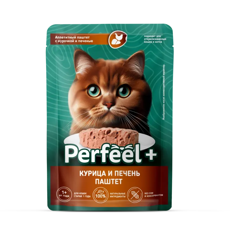 КОРМ ВЛАЖНЫЙ PERFEEL+ ДЛЯ КОШЕК ПАШТЕТ С КУР. И ПЕЧ. 28*75Г.