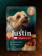 Корм влажный Justin для собак с говядиной в соусе 28*75г