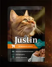 Корм влажный Justin для кошек с ягненком в соусе 28*75г