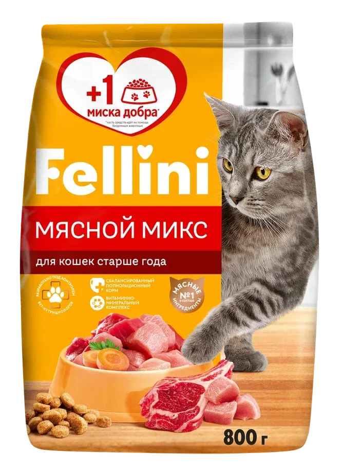 СУХОЙ КОРМ ДЛЯ КОШЕК FELLINI МЯСНОЙ МИКС 4*800ГР