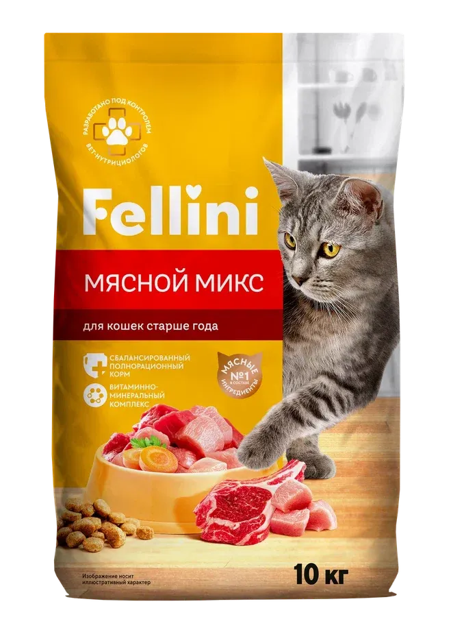 СУХОЙ КОРМ ДЛЯ КОШЕК FELLINI МЯСНОЙ МИКС 10КГ