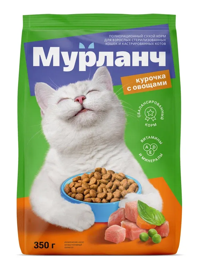 СУХОЙ КОРМ ДЛЯ КОШЕК МУРЛАНЧ С КУРИЦЕЙ И ОВОЩАМИ 12*350ГР