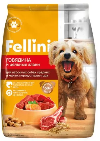 СУХОЙ КОРМ ДЛЯ СОБАК СРЕД. И МАЛЫХ ПОРОД FELLINI ГОВЯДИНА/ЗЛАКИ 4*600ГР