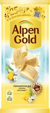 АЛЬПЕН ГОЛЬД ШОКОЛАД ПИНАКОЛАДА В БЕЛОМ ШОКОЛАДЕ 20Х80Г