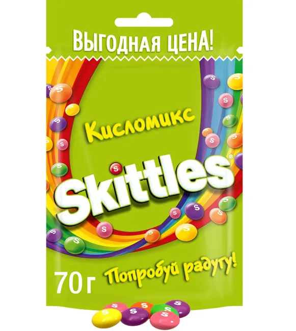 SKITTLES ЖЕВ.КОНФЕТЫ В ГЛАЗУРИ КИСЛОМИКС 26*70ГР