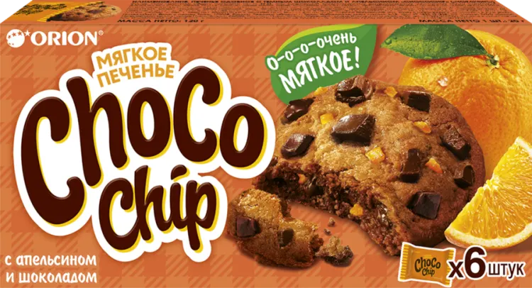 ПЕЧЕНЬЕ СДОБНОЕ С ШОКОЛАДОМ И АПЕЛЬСИНОМ ЧОКОЧИП 120ГР *16ШТ