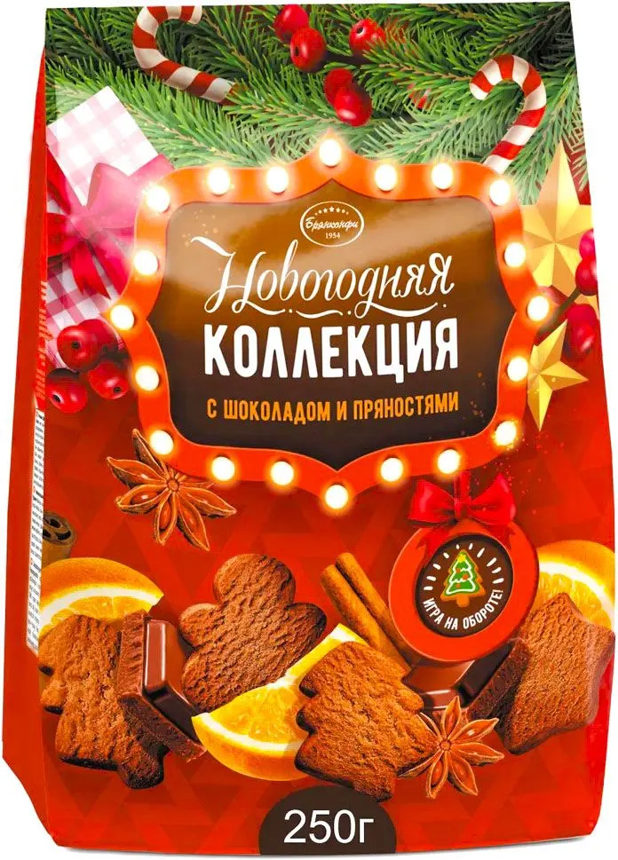 ПЕЧЕНЬЕ СДОБНОЕ НОВОГОДНЯЯ КОЛЛЕКЦИЯ С ШОКОЛАДОМ И ПРЯНОСТЯМИ 250ГР БРЯНКОНФИ