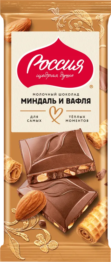 ШОКОЛАД РОССИЯ МОЛОЧ.С МИНД.И ВАФЛ.75ГР*21ШТ